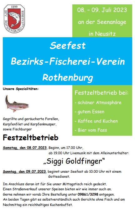 Seefest des Bezirks-Fischerei-Verein Rothenburg vom 8. – 9. Juli 2023 an der Seenanlage in Neusitz