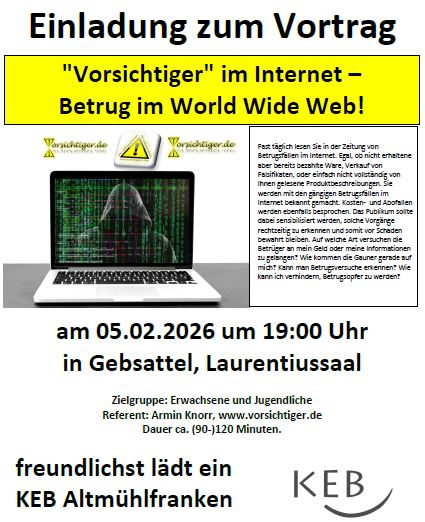 Fast täglich lesen Sie in der Zeitung von Betrugsfällen im Internet. Egal, ob nicht erhaltene aber bereits bezahlte Ware, Verkauf von Falsifikaten, oder einfach nicht vollständig von Ihnen gelesene Produktbeschreibungen. Sie werden mit den gängigen Betrugsfällen im Internet bekannt gemacht. Kosten- und Abofallen werden ebenfalls besprochen. Das Publikum sollte dabei sensibilisiert werden, solche Vorgänge rechtzeitig zu erkennen und somit vor Schaden bewahrt bleiben. Auf welche Art versuchen die Betrüger an mein Geld oder meine Informationen zu gelangen? Wie kommen die Gauner gerade auf mich? Kann man Betrugsversuche erkennen? Wie kann ich verhindern, Betrugsopfer zu werden?